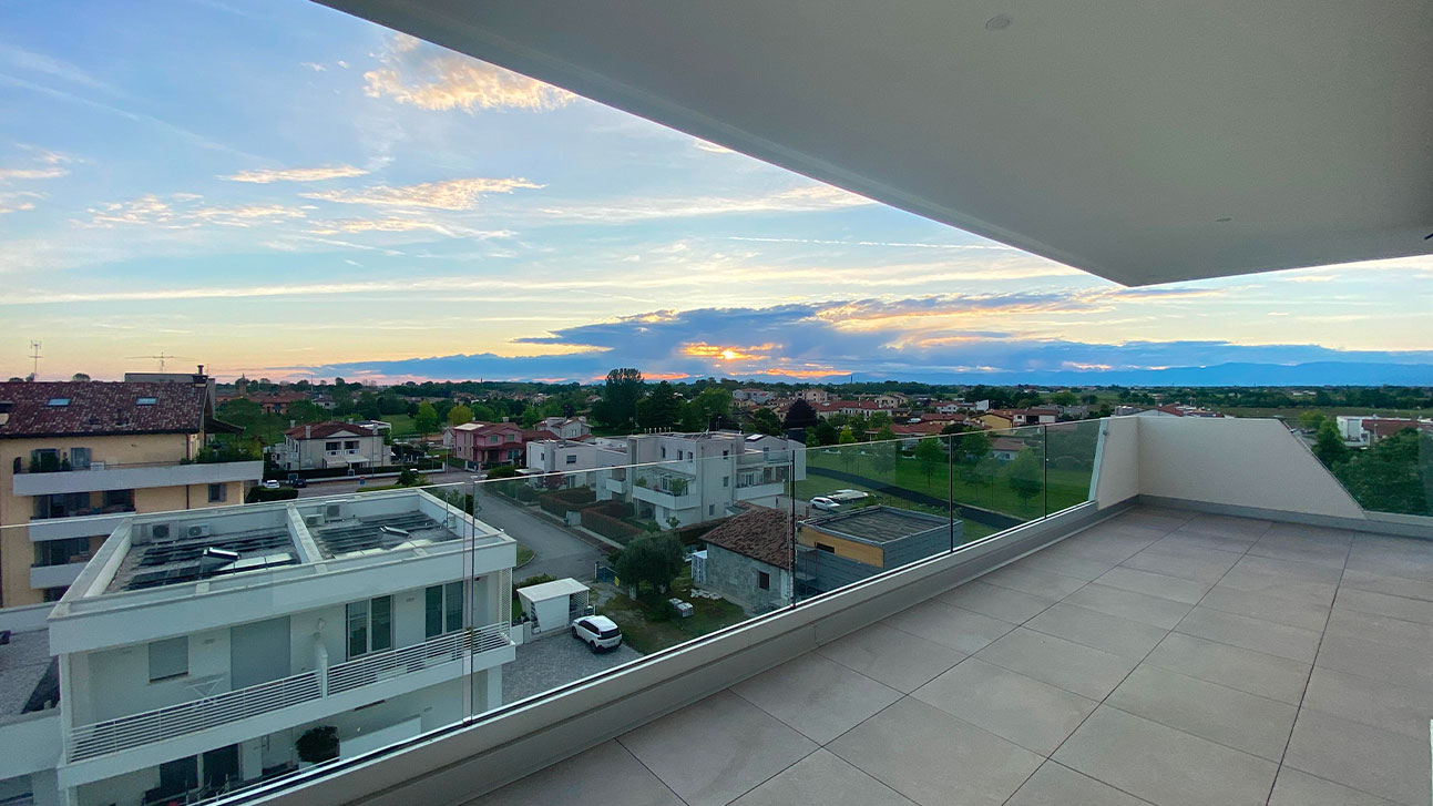 El orden en que se colocan los soportes y las losas no es indiferente. En el caso de terrazas donde se instala un suelo sobreelevado, generalmente es preferible comenzar desde el antepecho con la baldosa entera, reservando los posibles cortes cerca del umbral de la puerta. Esta solución resulta estéticamente más equilibrada, ya que al entrar en el espacio exterior la mirada tiende naturalmente a dirigirse hacia el exterior y hacia el borde de la terraza, en lugar de hacia la zona inmediatamente adyacente al acceso.